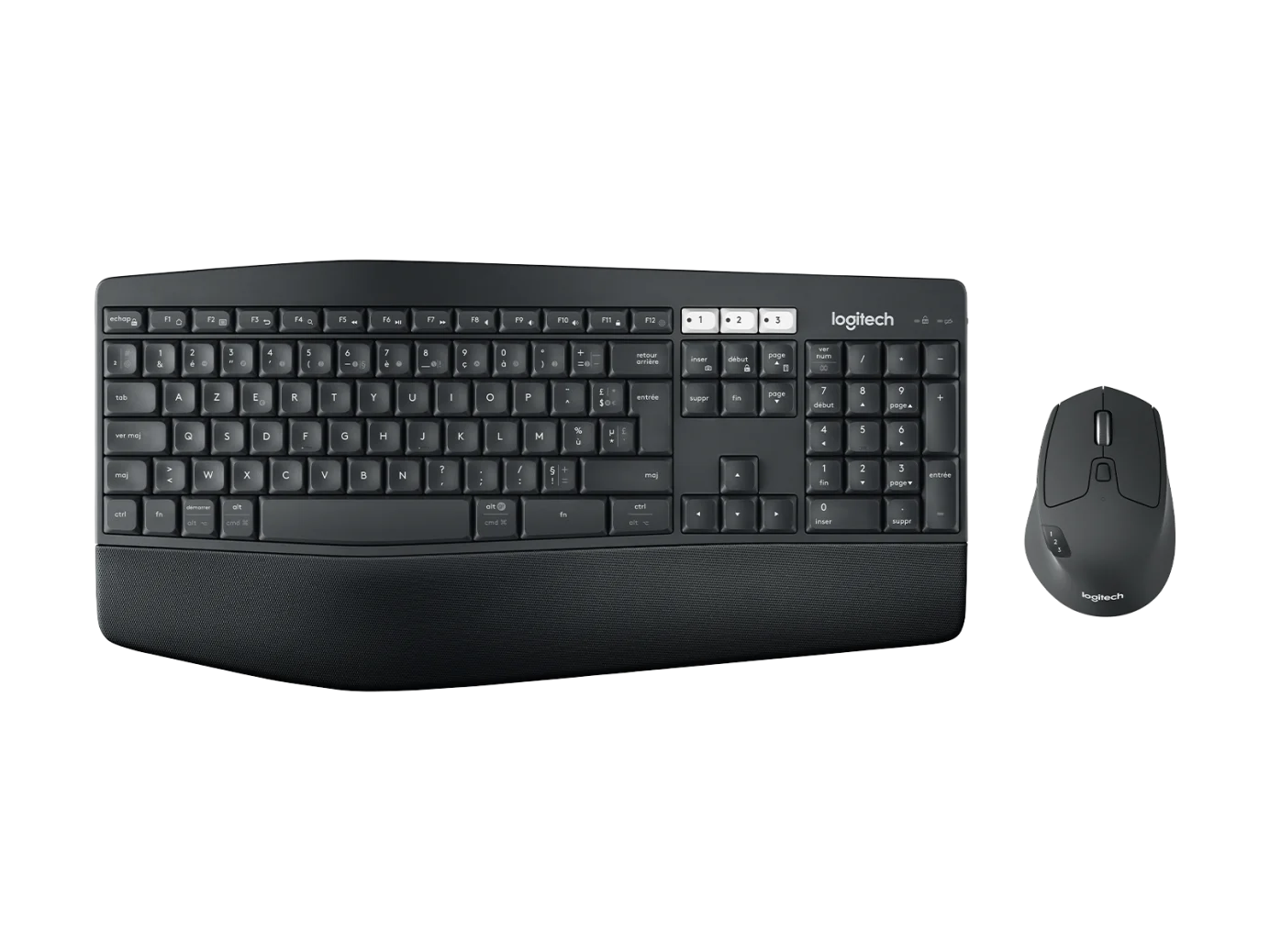 Logitech MK850 Performance คีย์บอร์ดมาในขนาด Full Size มีความโค้งสวยงามปรับตั้งได้ 3 ระดับ พร้อมแถบรองข้อมือถูกหลักสรีระ มอบความเป็นธรรมชาติ ลดอาการเมื่อยล้าเมื่อต้องใช้งานเป็นเวลานาน ส่วนเมาส์ออกแบบมาสำหรับมือด้านขวาโดยเฉพาะ มีปุ่มเปิดปิดใช้งานช่วยประหยัดแบตฯ เมื่อไม่ไ่ด้ใช้งาน