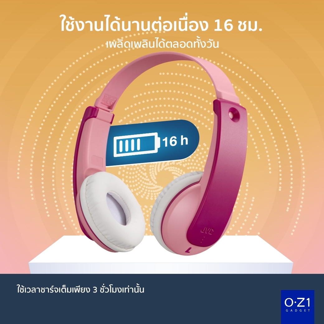 JVC HA-KD10W หูฟังครอบหูไร้สายสำหรับเด็กอายุ 3 ขวบขึ้นไป มาในสีสันให้เลือกถึง 2 สี นอกจากนี้มีสติ๊กเกอร์มาช่วยเพิ่มสีสันและพัฒนาการด้านความคิดสร้างสรรค์ พร้อมความสามารถครบครัน ทั้งด้านเสียงและการใช้งานได้อย่างคุณภาพมีมาตรฐานที่ไว้ใจได้อีกด้วยครับ![JVC HA-KD10W หูฟังบลูทูธ On-Ear สำหรับเด็ก เสียงดี ใส่สบาย ใช้งานต่อเนื่อง 16 ชม. [มาตรฐานญี่ปุ่น]](https://oz1gadget.s3.ap-southeast-1.amazonaws.com/wp-content/uploads/2023/03/12163305/2023.5.12_230512_11.jpg)