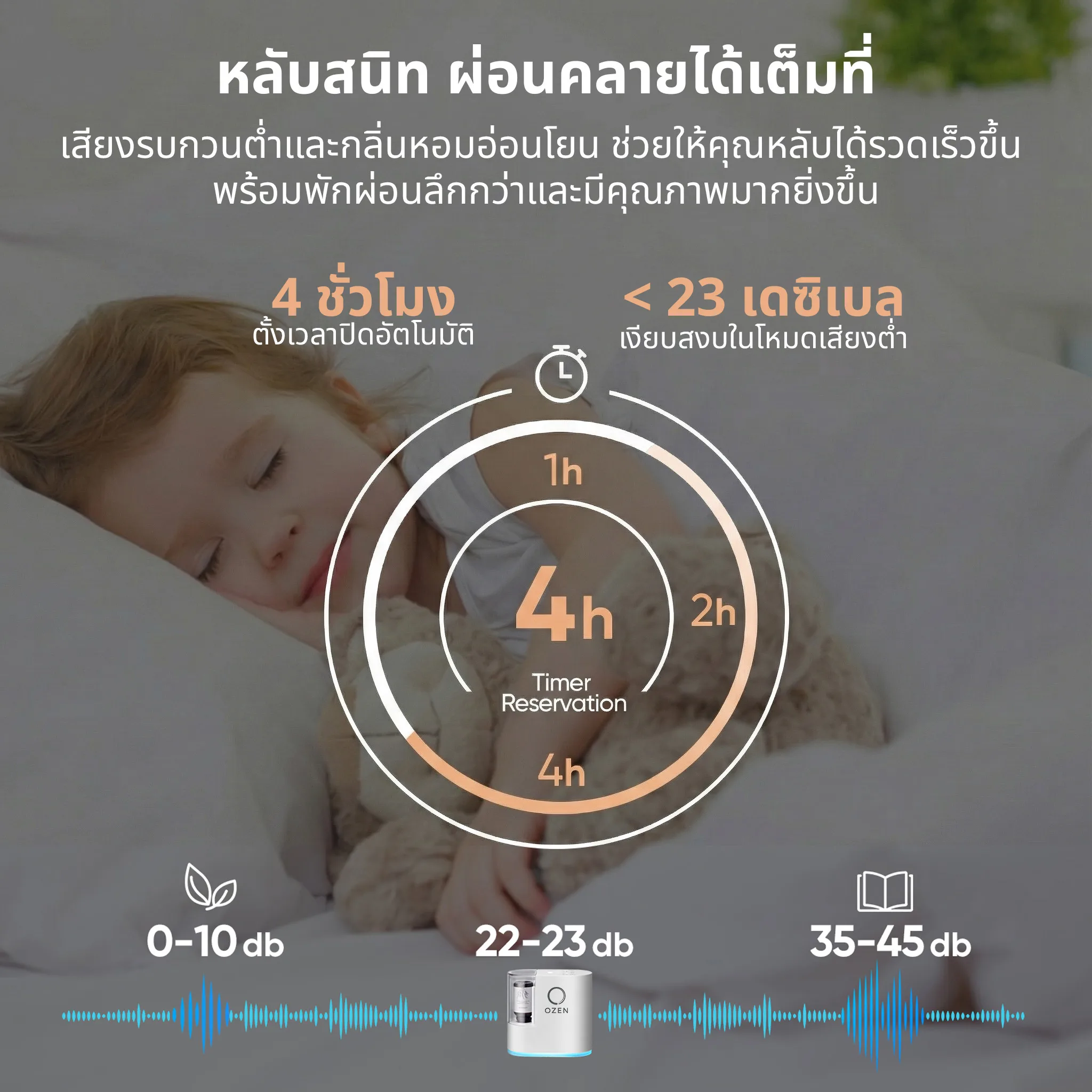 ตัวเครื่องทำงานเงียบมาก ระดับเสียงต่ำกว่า 23dB จึงไม่รบกวนการพักผ่อน อีกทั้งมาพร้อมแบตเตอรี่ 2500mAh ใช้งานแบบไร้สายได้สะดวก เหมาะสำหรับผู้ที่ต้องการเครื่องกระจายกลิ่นที่ใช้งานได้จริงในชีวิตประจำวัน