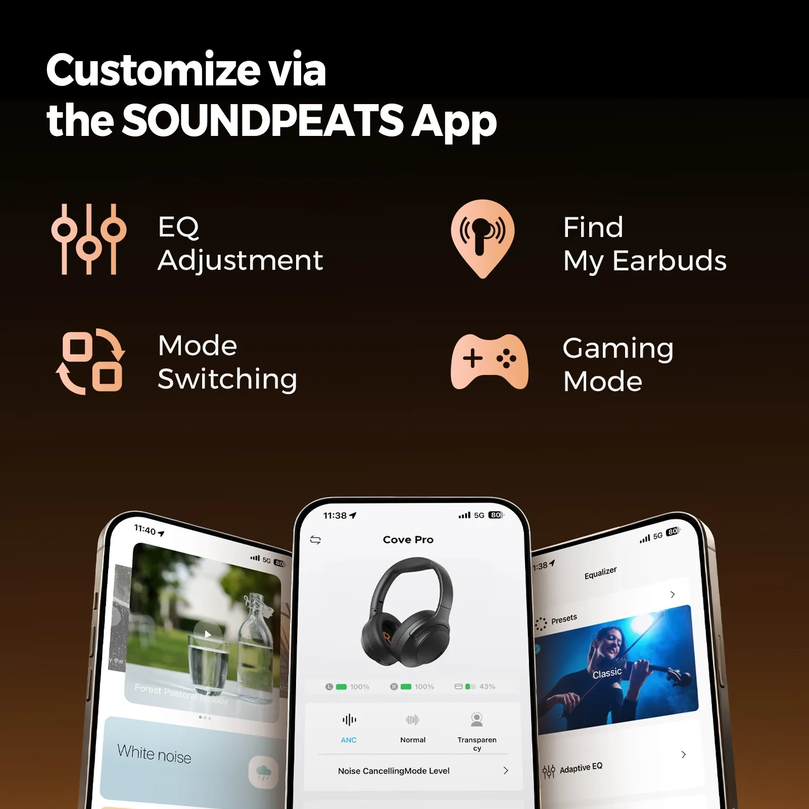 SoundPEATS Cove Pro คือหูฟังครอบหูแบบ full size ที่ออกแบบมาเพื่อการฟังเพลงคุณภาพสูง เล่นเกม ดูหนัง และคุยสายได้อย่างสะดวก รองรับการเชื่อมต่อทั้งแบบ Bluetooth และแบบเสียบสาย พร้อมจุดเด่นเรื่อง Hi-Res Audio, Hybrid Active Noise Cancellation และไมโครโฟนหลายตัวช่วยให้เสียงคุยชัดขึ้น