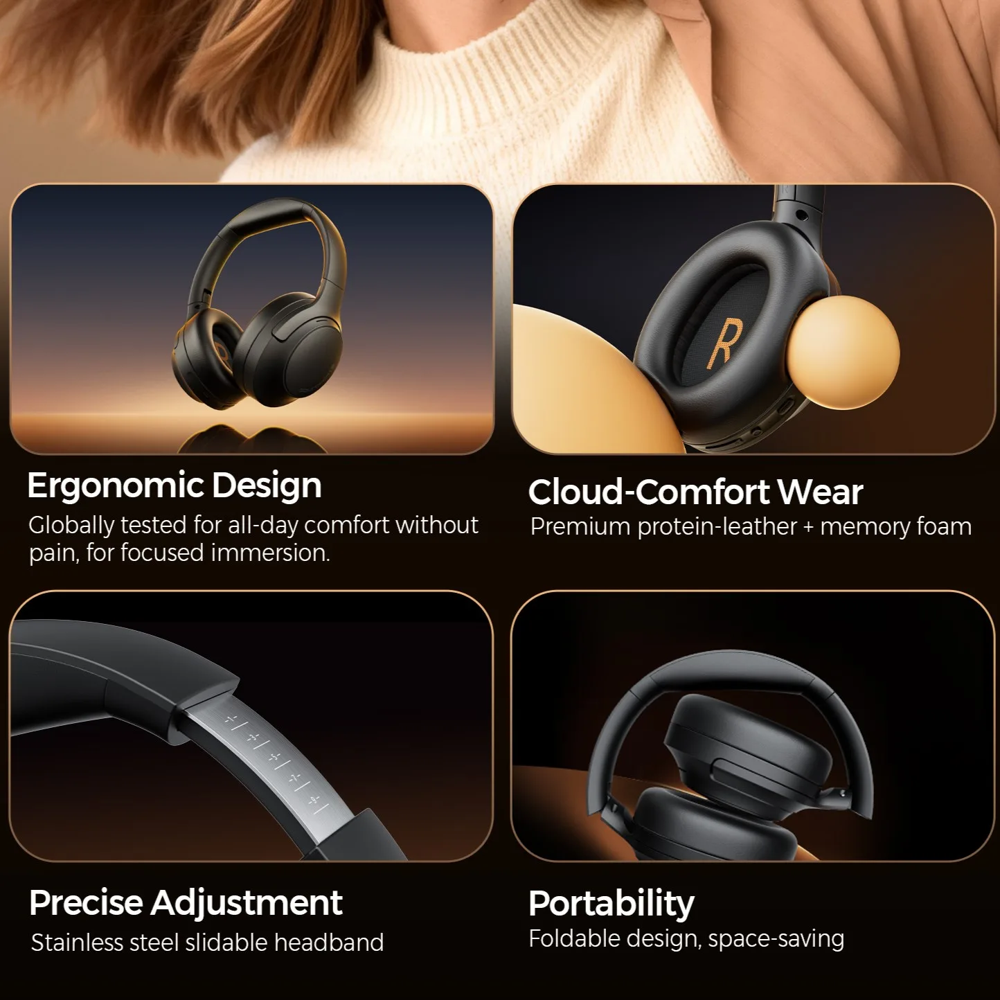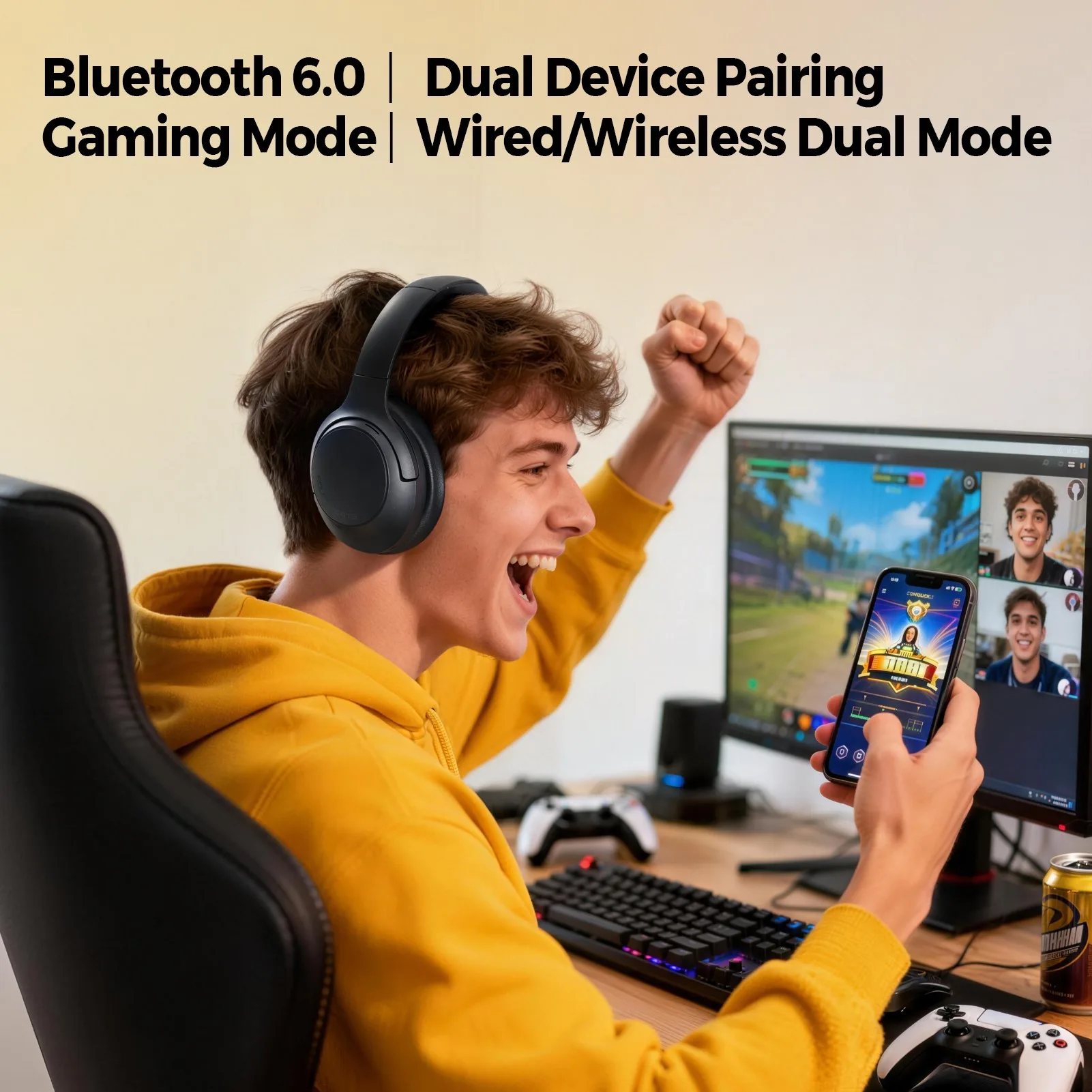 รุ่นนี้รองรับ Bluetooth 6.0, Codec AAC / SBC / LDAC, ไดรเวอร์ขนาด 40 mm และมีโหมดการใช้งานที่ปรับได้ทั้ง Music Mode, Movie Mode และ Game Mode เหมาะสำหรับคนที่ต้องการหูฟังครอบหูที่ใช้ได้หลากหลายสถานการณ์