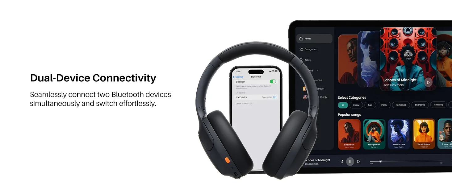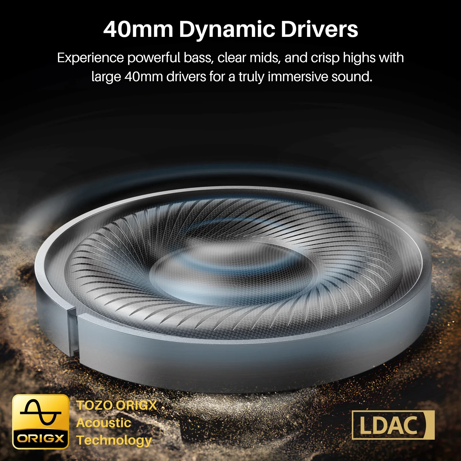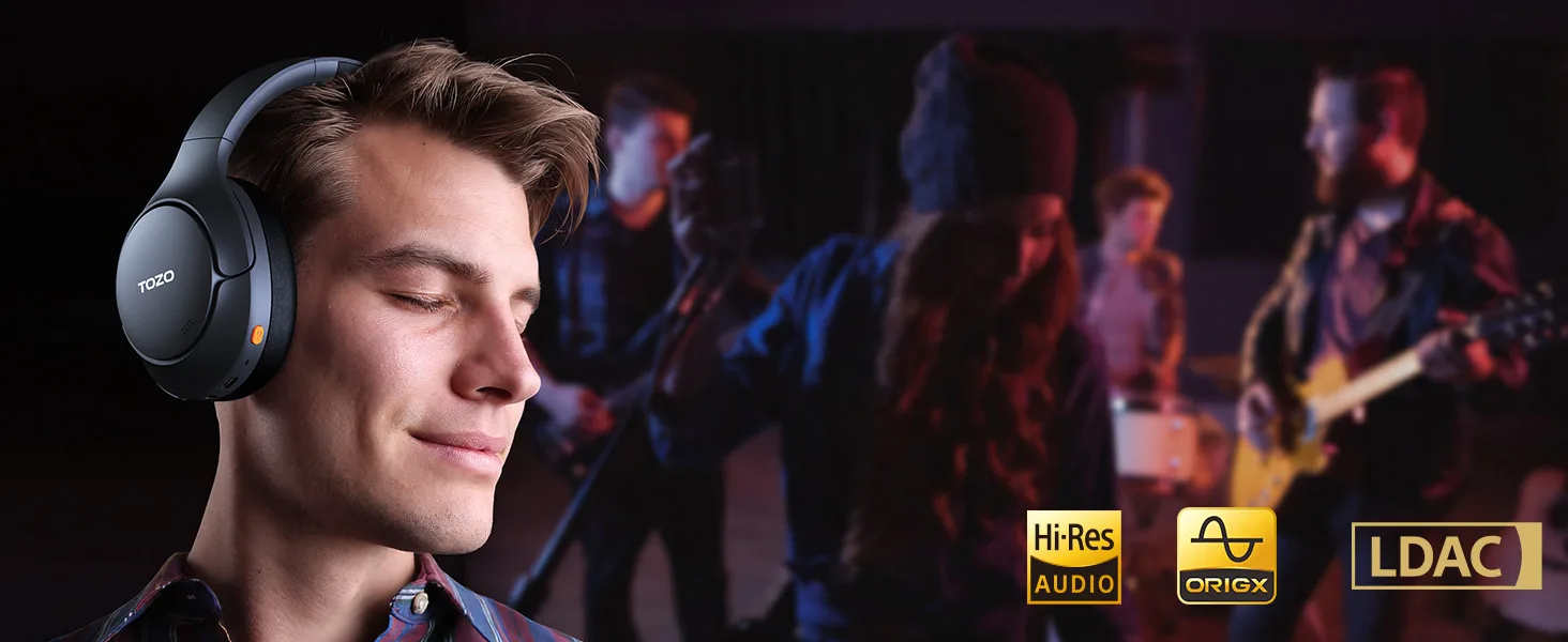 TOZO H20 เป็นหูฟังครอบหูไร้สายที่ออกแบบมาเพื่อการฟังเพลงและการใช้งานในชีวิตประจำวัน ด้วยระบบตัดเสียงรบกวน Active Noise Cancellation สูงสุด -45dB, ไดรเวอร์ขนาด 40 มม. และรองรับ LDAC Codec พร้อม Hi-Res Audio Wireless ให้รายละเอียดเสียงคมชัดทั้งแบบเสียบสายและไร้สาย