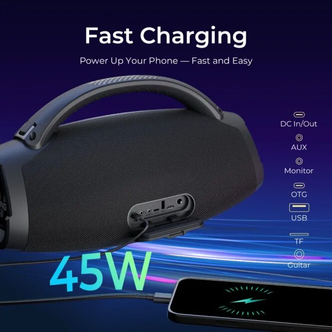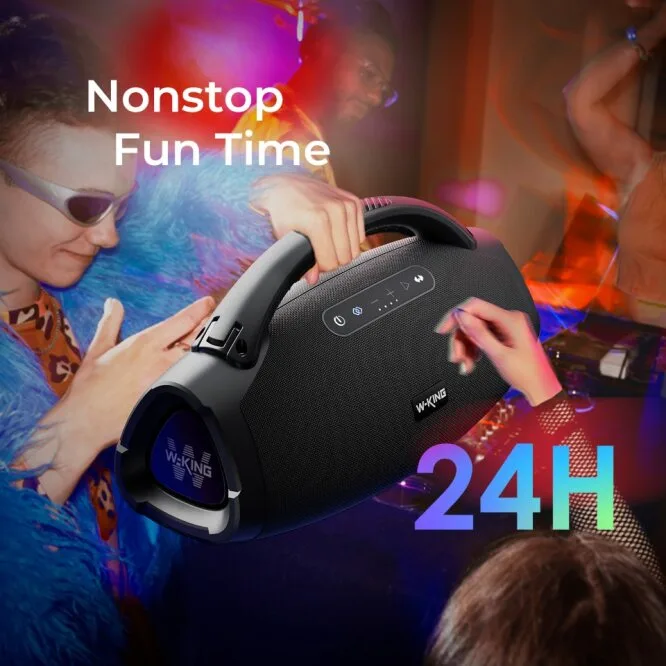 W-King X20S เป็นลำโพงบลูทูธพกพาที่ออกแบบมาเพื่อคนที่ต้องการพลังเสียงหนักแน่น ใช้งานได้ทั้งในบ้าน นอกสถานที่ หรือกิจกรรมกลางแจ้ง พร้อมกำลังขับ 140 W RMS, กันน้ำระดับ IPX7 และแบตเตอรี่ที่ใช้งานได้นานสูงสุด 15 ชั่วโมง ที่ความดัง 50%